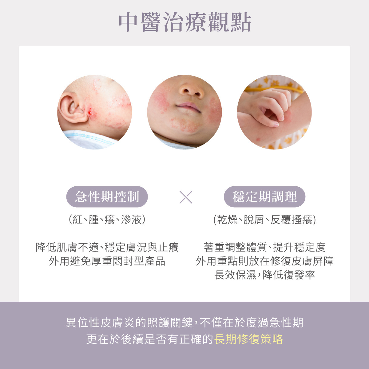 中醫師也補充,臨床觀察發現,許多孩子在症狀穩定後,若能持續做好外在修復照護,並搭配體質調理,復發頻率通常能明顯下降。因此,異位性皮膚炎的照護關鍵,不僅在於度過急性期,更在於後續是否有正確的長期修復策略。
